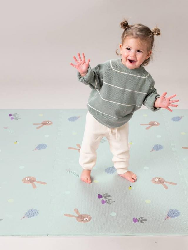 Alfombra puzzle XL – TAF TOYS Una preciosa alfombra de felpa con 6 piezas de puzzle tamaño XL para montar. Puedes elegir el número de piezas que quieres utilizar para crear una alfombra con el tamaño que prefieras. A destacar del producto Alfombra puzzle XL Las piezas tienen bordes rectos por el estilo. Con una densidad de 30kg/m3 y un grosor de 1,2 cm, tu peque disfrutará de la máxima comodidad y podrá caminar sin problemas sobre la alfombra. Dimensiones de cada pieza: 60 x 60 cm. Dimensiones máximas de la alfombra: 120 x 180 cm. Se incluye bolsa de organización. INFORMACIÓN ADICIONAL: A partir del nacimiento. Promueve el desarrollo de la motricidad de tu bebé. Las ilustraciones de diferentes colores estimulan los sentidos de tu bebé. Las ilustraciones de diferentes colores estimulan la interacción entre padres e hijos y la inteligencia emocional de tu bebé. Alfombra puzzle XL – TAF TOYS
