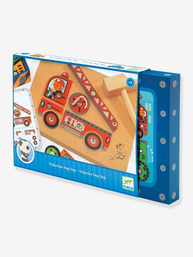 «Tap, tap» vehículos DJECO Juego «tap, tap» vehículos, un clásico de las actividades infantiles rediseñada por Djeco para desarrollar la destreza motora de los más pequeños. Tu peque podrá construir sus propios coches y camiones colocando las piezas en el soporte de corcho y fijándolas con ayuda de pequeños clavos y un martillo. Podrá reproducir los modelos que se proponen ¡o utilizar su imaginación para crear un infinito número de vehículos! ¡Todo ello en una bonita caja de madera! Ventajas de «Tap, tap» vehículos DJECO A partir de 4 años Incluye: 24 piezas de madera perforadas y con ilustraciones, clavos, 1 plancha de corcho, 1 martillo de madera y 5 tarjetas modelo. Caja de madera. ¡Un juego «tap, tap» en una bonita y sólida caja de madera! 5 cartas modelo que guiarán a tu peque para construir coches y camiones. Material de calidad: plancha de corcho grueso, piezas y martillo de madera. Una caja bien diseñada con compartimentos para ordenar todos los elementos del juego.
